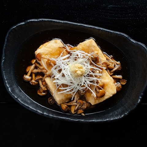 カリカリに揚げたお豆腐をさっぱりしたなめこおろし餡でお召し上がりください。
