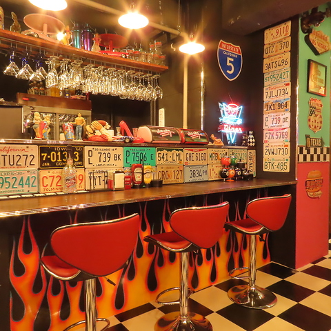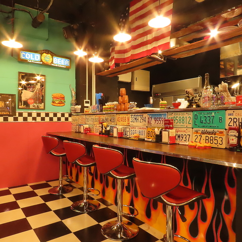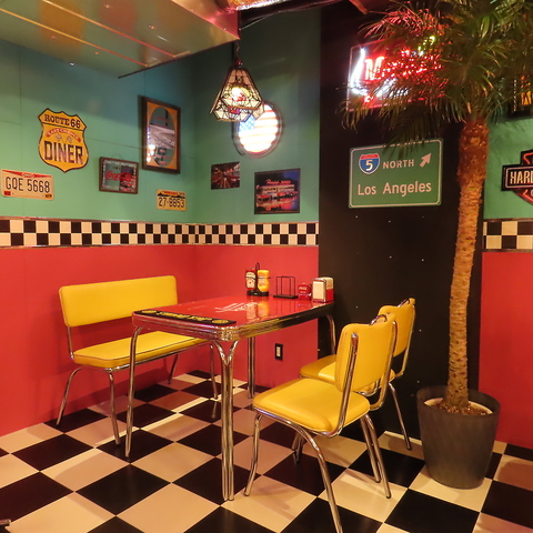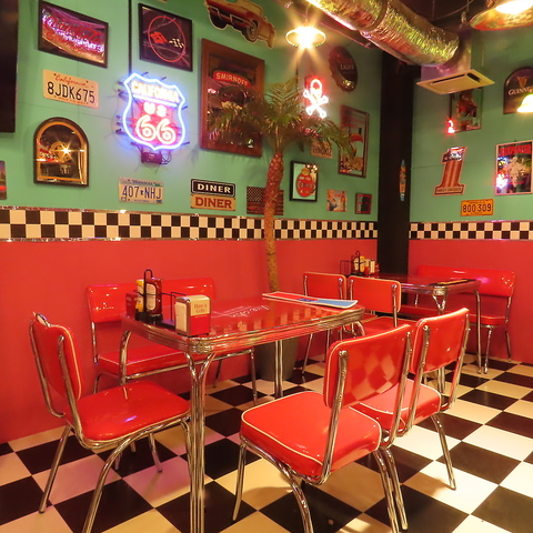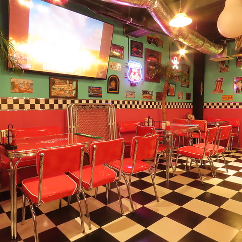 アメリカンダイナーをイメージした店内のインテリアは、ポップでおしゃれな空間を演出★当店ならではのアメリカンな雰囲気を感じながらワイワイお食事を楽しんで☆