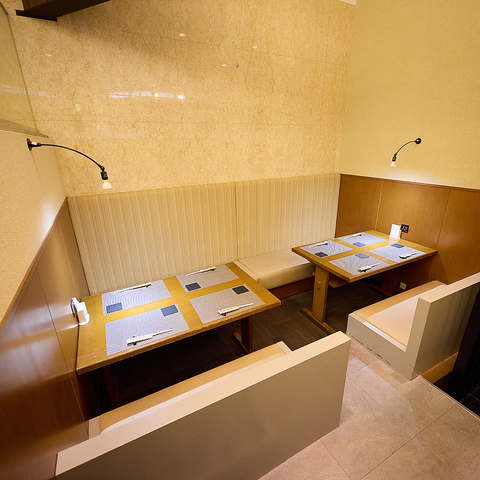 【宴会、二次会利用に】半個室は最大12名様、完全個室は10名様までご利用可能です。清潔感あふれる落ち着いた空間で心地よい時間をお過ごしください。完全禁煙のため煙の気にならない快適な環境でお食事をお楽しみいただけます。