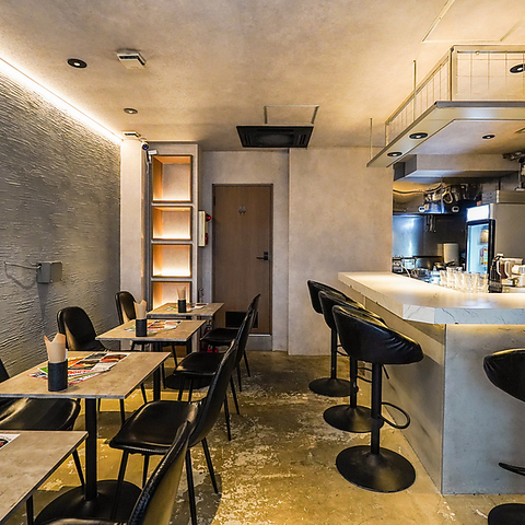 洗練されたデザインが調和する心地よい空間◎落ち着いた照明が日常の喧騒を忘れさせ、ゆったり過ごせる雰囲気が魅力です。お一人様でも気兼ねなく利用できるカウンター席は、目の前で調理されるライブ感を楽しめる特等席♪上質な内装は、デートや友人とのランチ、自分へのご褒美ディナーなど様々なシーンを華やかに彩ります。