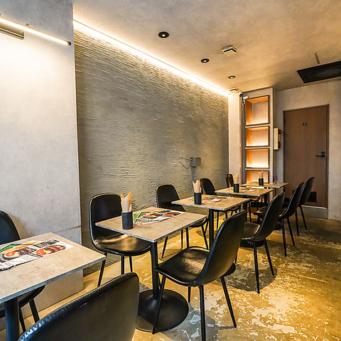 洗練されたデザインのテーブル席は、友人同士の語らいや家族での団らんに最適です◎開放感のあるレイアウトにより、ゆったりと腰を落ち着けてお食事を楽しめます。落ち着いた照明が演出する上質なカジュアル空間で、こだわりの和牛バーガーを囲みながら、素敵なひとときをお過ごしください♪