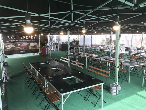 【BBQサイト 1700円(税込)~】明るく広々としたテーブルのお席でバーベキューがお楽しみいただけます。お気軽にご利用ください♪