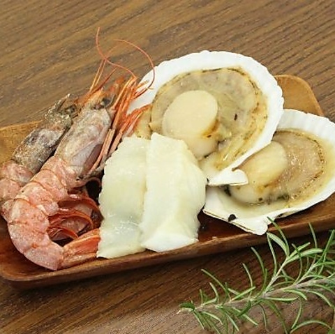 香ばしく焼いたプリップリの「大ぶりの海老」、「ホタテ」、そして柔らかくて美味しい「イカ」