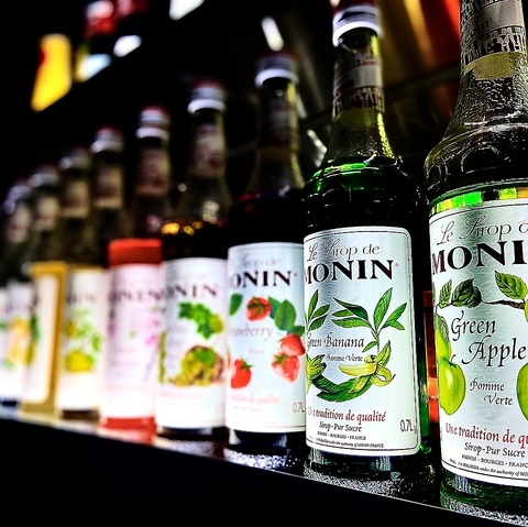 各種割物お選びいただけます。ソーダ/トニックウォーター/ジンジャーエール/コーラ/オレンジ/パイン/グレープフルーツ/烏龍茶/ミルク
