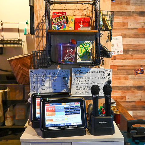 カラオケ・ダーツ・ビデオゲーム・カードゲームなど遊び要素満載!飲食メインも歓迎!スタッフと乾杯&対戦も◎