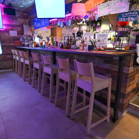 カウンター席も完備!お隣さんとの距離も近く、ぐっと親密になれるチャンスかも…。デートやお一人でのご来店も安心!スタッフとも楽しくお話できる特等席です♪