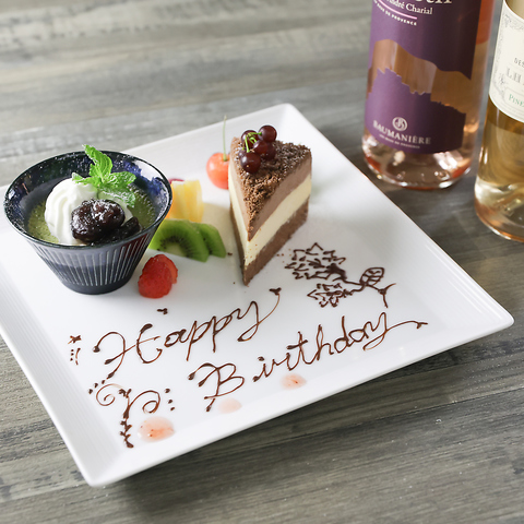 主役に向けてのメッセージを添えた特製アニバーサリープレートをご用意可能です!!事前にご予約下さい♪