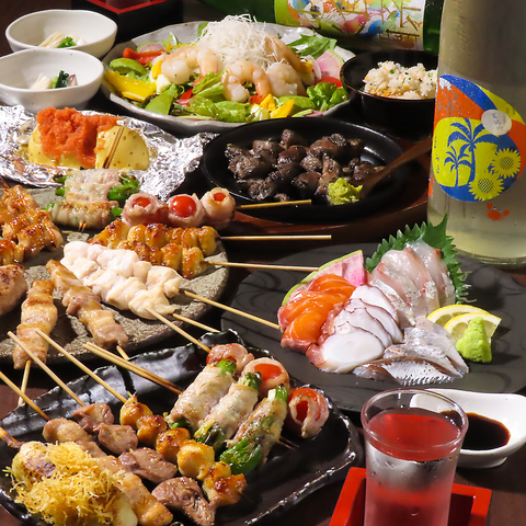 ご注文は当日可能♪知覧どりの炙りもも焼き、焼鳥五種など全8品を味わえる【鳥乃屋コース】が5000円(税込)でお楽しみいただけます。