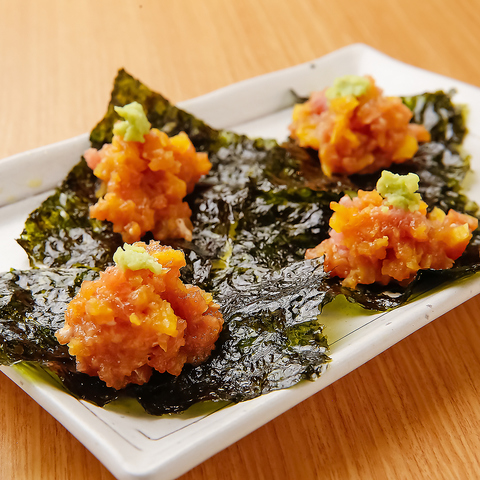 新鮮な鰹と焼き茄子に特製よだれソースを合わせた一品。炙り鰹と焼き茄子の香ばしさがソースと合わさることで旨さが引き立ちます。お酒との相性も抜群です!