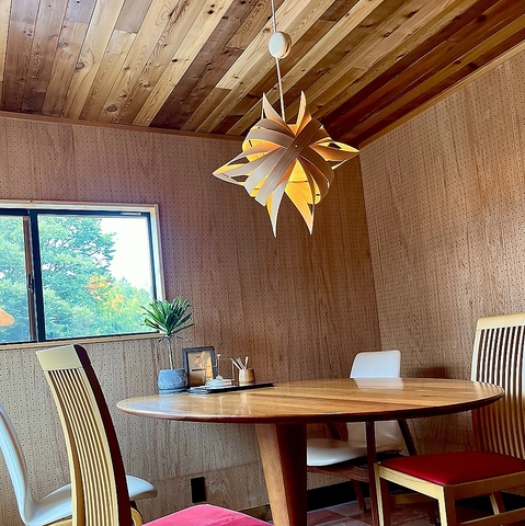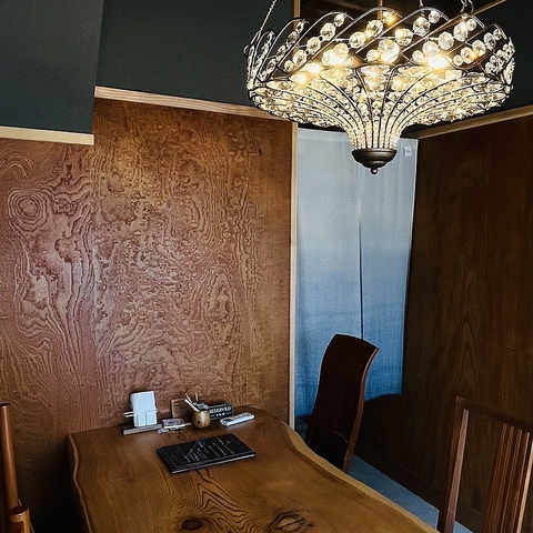店内には趣の異なる6つのお部屋があり、どのお席でも心をほどくようなひとときをお過ごしいただけます。テーブル席には、一脚ずつ異なる個性を持った椅子を配しながらも、調和のとれた空気が漂います。最大8名様までご利用いただけますので、ご会食や特別なひとときにもぜひご利用ください。