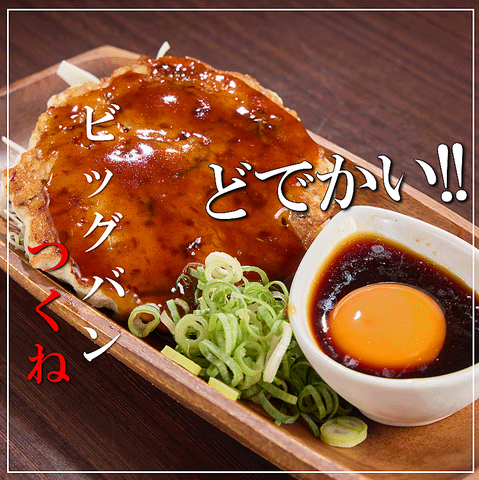 【豪快すぎる!ビッグバンつくね誕生】一度見れば忘れられないインパクト抜群の特大つくね。外は香ばしく中はふっくらジューシーに焼き上げ、濃厚卵黄ダレにくぐらせれば旨みが弾け飛ぶ!大きさも美味しさも桁違い、名物確定の新メニューです。