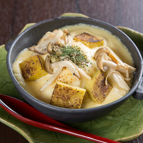 和洋折衷をコンセプトとする当店ならではの創作料理。じっくり煮込んだ牛すじの深い旨みと、九条ねぎの甘みと香りが絶妙にマッチ。ベースにはコクのある自家製トマトソースを使用し、イタリアンのエッセンスを加えることで、和の食材との調和を実現しました。地元食材の魅力を活かした、他にはない個性あふれる一品です。