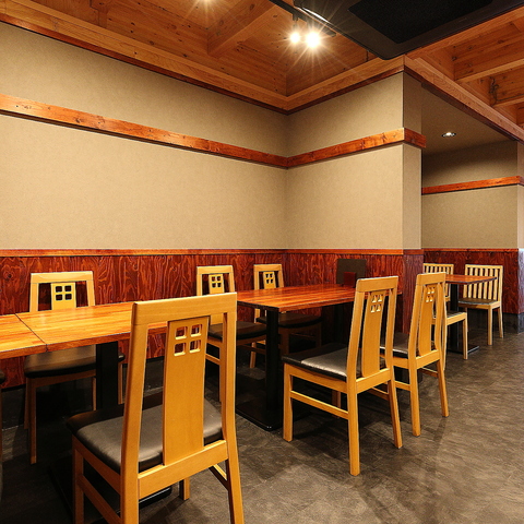 【和の温もりに包まれる、寛ぎのテーブル空間】テーブル席は、居心地の良さにこだわった設計。会話が自然とはずむ穏やかな空間です。