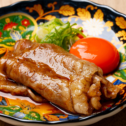 特製だれの焼きしゃぶ 濃厚卵黄添え/濃厚卵黄に絡まる特製だれで焼き上げた和牛サーロイン一枚肉/焼きしゃぶ用「ちょこっとのっけ飯 308円(税込)」に乗せても絶品!