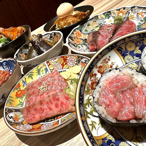 黒毛和牛を炭焼きの炉端料理で楽しめる当店では、焼肉店系列ならではの高品質な肉が自慢です。さっと炙って濃厚な卵黄に絡めてお召し上がりいただく"焼きしゃぶ"や厳選した和牛のとろ部分だけを贅沢に使用した"和牛とろ鉄火"など多彩なメニューをご用意。そのほか逸品料理や海鮮も充実!