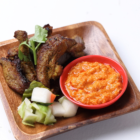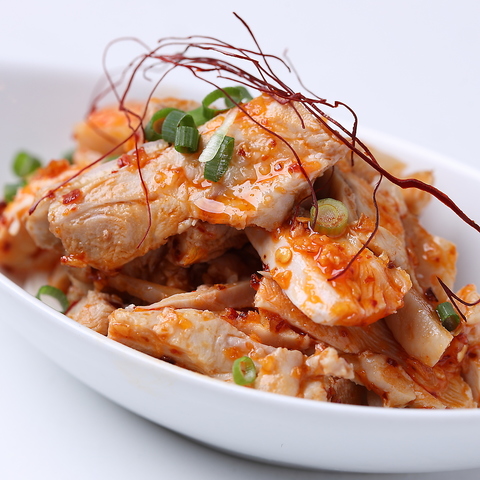 店主が家でも作っている料理をお店でも!焼いた鶏もも肉に玉ねぎ、長ネギ、トマトなどの野菜を辛めのスパイスを和え、熱い油を最後に混ぜて出来上がる店主オリジナルメニュー