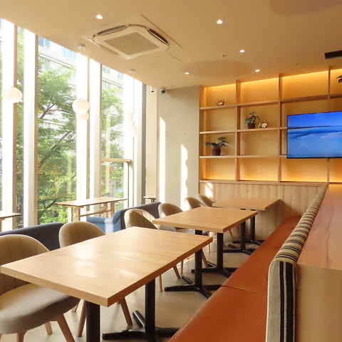 ゆったりとリラックスして過ごせるお店です♪明るく開放的な雰囲気で、ランチにもディナーにも利用できるオシャレな内装が魅力★お食事メニューから夜飲みまで幅広くご用意しておりますので、様々なシーンでご利用いただけます!ぜひ当店までお越しください♪