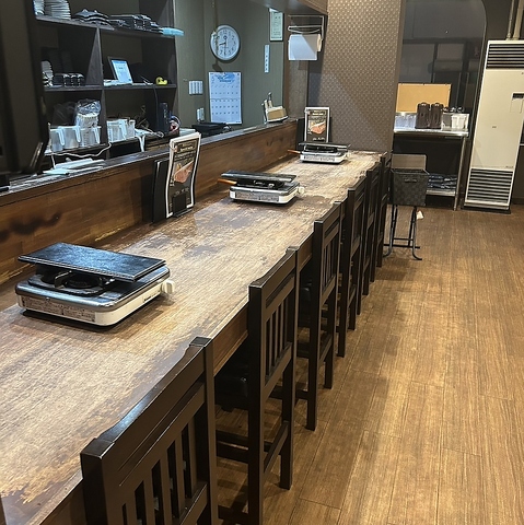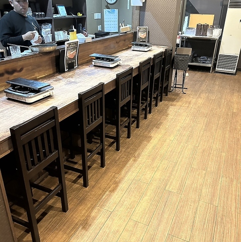 ゆっくり落ち着けるカウンターのお席。大切な方と一緒に楽しんでいただける空間です。当店自慢の生ラムジンギスカンと一緒に思い出に残る時間をお過ごしください。