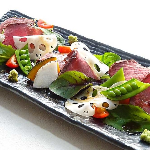 京都府産の旬の京野菜をふんだんに使った、目にも鮮やかな創作料理をぜひご賞味ください♪季節に応じて変わる新鮮な食材を、料理人が巧みに調理し、繊細な一皿に仕上げます!美味しさだけでなく、見た目の美しさも楽しめる料理をご堪能いただけますので、ぜひおすすめメニューをチェックしてみてください◇