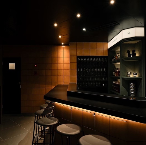 暗めの雰囲気に光が目を引く店内。カウンター席を中心にご用意しております