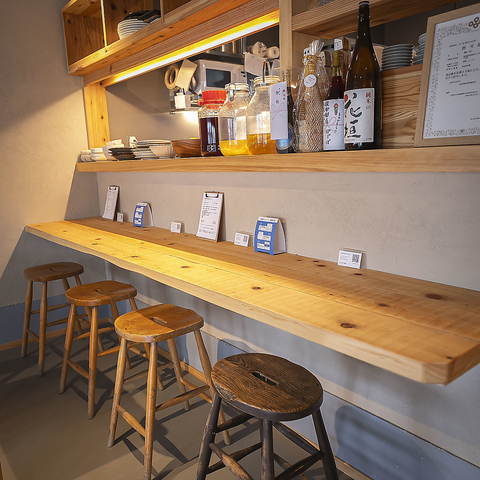 当店のインテリアは、温かみのある木材を基調にしたデザインが特徴です。ナチュラルな雰囲気を大切にし、カウンター席や2名がけテーブル席を配置し、リラックスできる空間を演出しております。心地よい照明が落ち着いた雰囲気を作り出し、居心地の良さを追求◎おひとりさまでも気軽にお越しいただけるアットホームな環境です♪