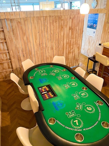 カフェバーのような明るく綺麗なポーカーバーで、女性や初心者の方でも気軽にご来店いただけます。もちろんお酒やドリンクもお楽しみいただけます。※アミューズメントのため、換金・景品交換は一切行いません※