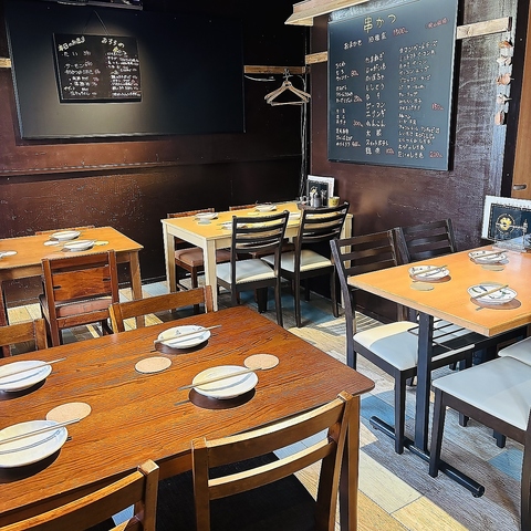 落ち着いた雰囲気の店内には、木の温もりを感じるテーブルをご用意しております。壁には手書きのメニューが掲示されており、どれも心惹かれる逸品ばかりです◎ご家族や地元のご友人との楽しいひとときを過ごすのに最適な場所です。お客様のご来店を心よりお待ちしております♪