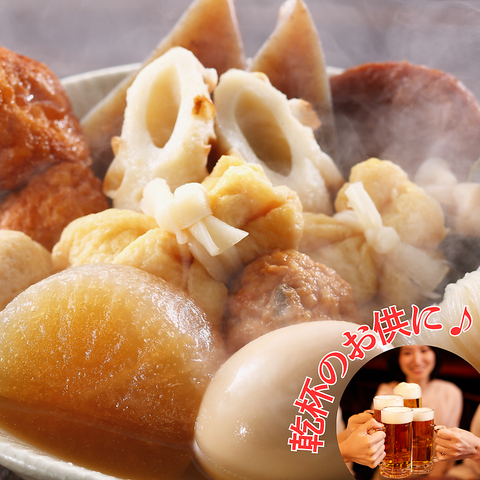 湯気の向こうで味しみ大根、ほろっと玉子、出汁香るちくわ。箸を入れた瞬間じゅわっと広がる旨み。心まであたたまる、冬のおでん時間をどうぞ。