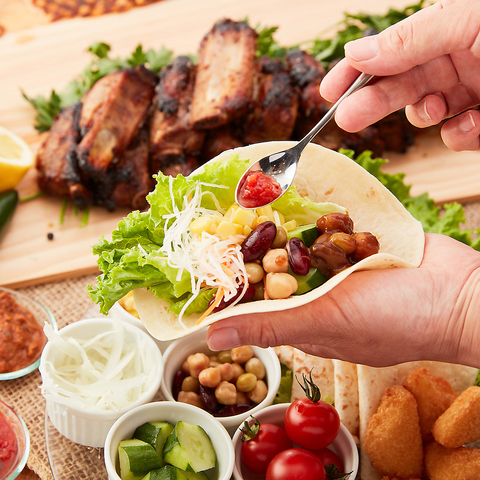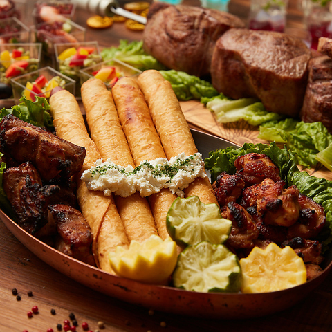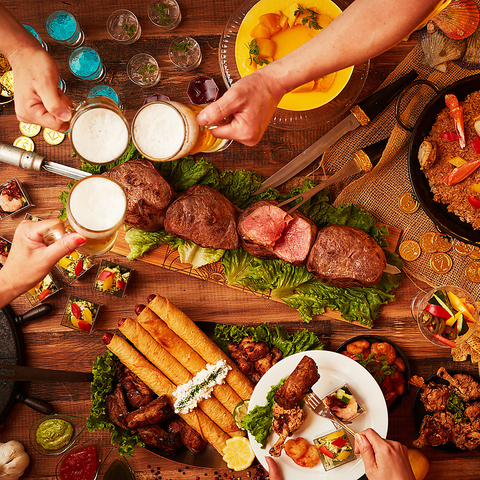 ジューシーなお肉やほどよくスパイシーな料理の数々はビールとの相性も抜群!炎のフランベ特製グリルなど、目でも楽しめる華やかな料理が並び、皆様でシェアしながら楽しいひとときをお過ごしいただけます。