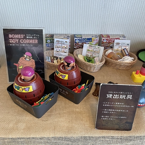 「毎日ハラハラ・ドキドキ★スリル玩具で盛り上がろう!」黒ひげ危機一髪などの仲間と楽しめるゲームを無料で貸し出し。テーブルを囲んで、笑いと興奮のひとときをお楽しみください!昨年にはなかった新しい玩具も登場し、さらに盛り上がること間違いなしです!