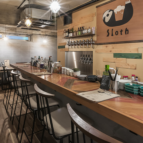 当店には、さまざまなシーンに対応できるお席が揃っています。カウンター席は8席あり、一人でも気軽に立ち寄れる雰囲気です◎また、友人や家族との語らいにぴったりな4名テーブルを2つご用意しております★スタンディングなら30名様までご利用も可!詳しくはCraft Beer Slothにご相談ください♪(リクエスト予約がおすすめ◎)