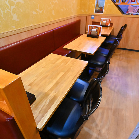 テーブル席ございます!隣の席と合わせて12人まで着席可能です!大人数での宴会でも利用可能です!