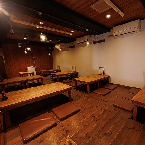 掘りごたつのお席はゆったりお過ごしいただけます。大人数様の宴会も可能です!