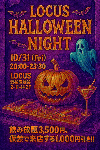 ハロウィンイベント開催決定!10/31のハロウィンに、仮装で来店いただくと、飲み放題3500円→2500円に!