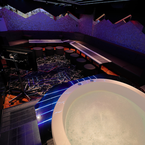 地下に広がる天高8メートルの開放的な空間は、目を見張るほどのゴージャスな内装で彩られています。ジャグジーやプールまで併設されており、非日常的なリゾート感を演出。煌びやかな照明と上質な音楽が融合し、まさに「ラグジュアリー」という言葉がふさわしい、大人のための極上エンターテイメント空間です。