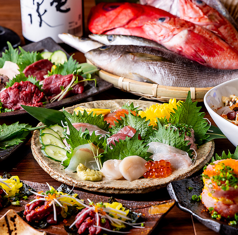 朝どれの新鮮な魚介を、横浜市中央卸売市場から産地直送で仕入れています。また、馬刺しは福島県会津から産地直送しており、赤身やモモ、フタエゴなどをメインに、希少部位に出会えることも◎どちらも楽しめる「馬刺しと鮮魚の盛り合わせ」もご用意しております!