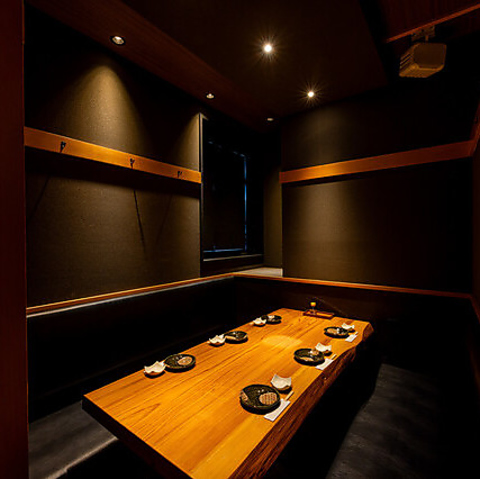 落ち着いた雰囲気の個室を完備しております。温もりある木のテーブルとシックな壁が、心地よい空間を演出。5名様からご案内が可能です。金曜日、土曜日席の指定はできません。ネット予約で指定をされましても金土祝前と5名様以下はテーブル席になってしまう可能性がありますので事前に電話でのご確認お願いします。
