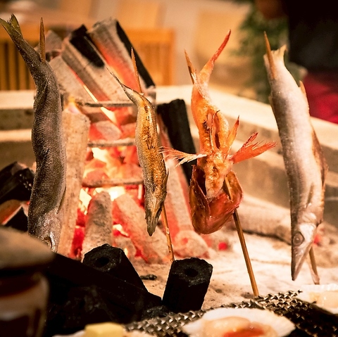 囲炉裏ならではの焼きあがり。外はパリっと中はホクホクに。銚子直送の鮮魚を絶妙な塩加減でお届けします。
