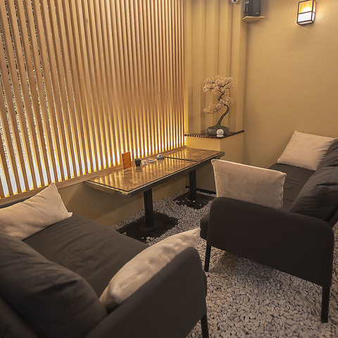 テーブル席は4名様用が3卓、5名様用が1卓あり、グループでの利用にも最適。盆栽や桜をあしらった和風の店内は、シンプルで温かみのあるインテリアが特徴。大切な人との特別な時間をお過ごしください。