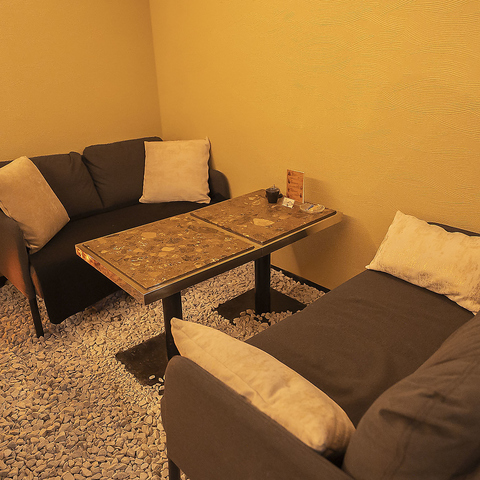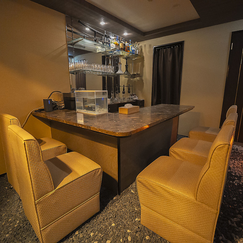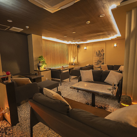 カウンター席は5席ご用意しており、落ち着いた和風の雰囲気の中でシーシャをお楽しみいただけます。間接照明と足元の灯篭が醸し出す柔らかな灯りが、リラックスしたひとときを演出。デートや友人との語らいにぴったりな空間です。