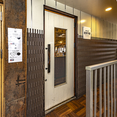 階段上がった先の2階にあります。隠れ家的存在でお一人様でゆっくりともOK、ご友人同士でワイワイとも歓迎