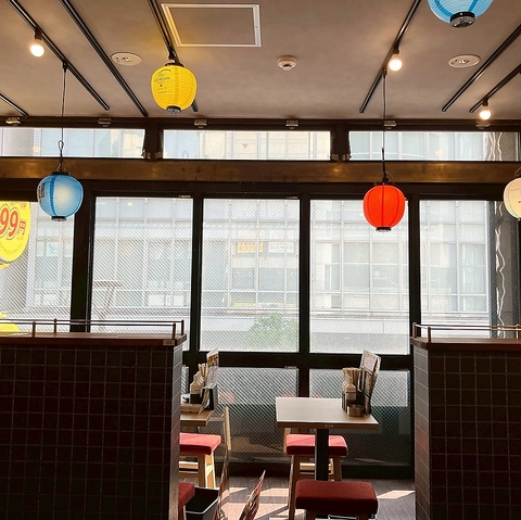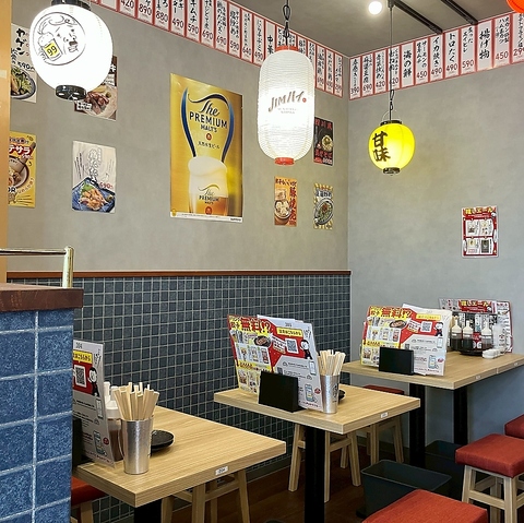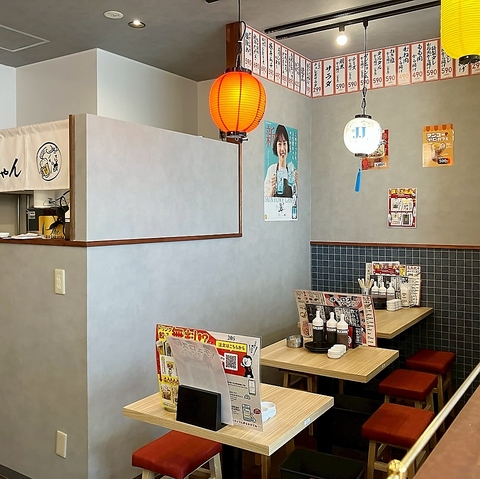 | テーブル | 4名様×6 | 明るい木目調の店内。どこか懐かしさを感じる店内で自慢の餃子とお酒をお楽しみください。 |