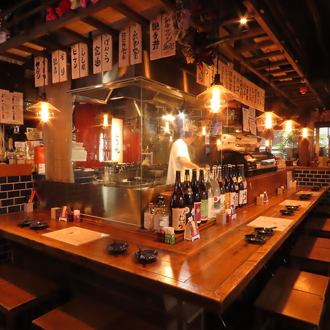 【カウンター席】テーブルが人気ですが、実は「カウンター席」も人気◎千歳烏山の大人の隠れ家「焼鳥屋 優」の醍醐味♪匠の技を五感で感じられるライブ感満載★焼き上がりを一本一本出してくれるのでアツアツの串とお酒を楽しめる♪おひとり様もお二人様も~心地いい店内は女性だけ・お一人様でも入りやすい!