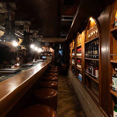 都会の喧騒を忘れさせる梅田の隠れ家、ウッドハウスのような温もり溢れる空間が自慢です!カウンター席で心地よい時間をお過ごしください。壁一面に並ぶ多彩なドリンクと調味料が、あなたの味覚を刺激します♪お一人様でも気軽に立ち寄れる落ち着いた雰囲気で、特別な体験をお楽しみいただけます◎
