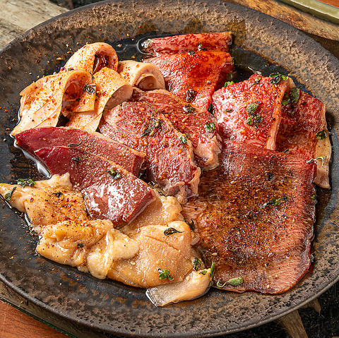 焼肉笠松のこだわりの牛肉を堪能できるスパイス盛り!店主が肉に合わせてブレンドしたスパイスがかかっているので、他とは違う焼肉をお楽しみいただけます!塩・タレもお選びいただけます。