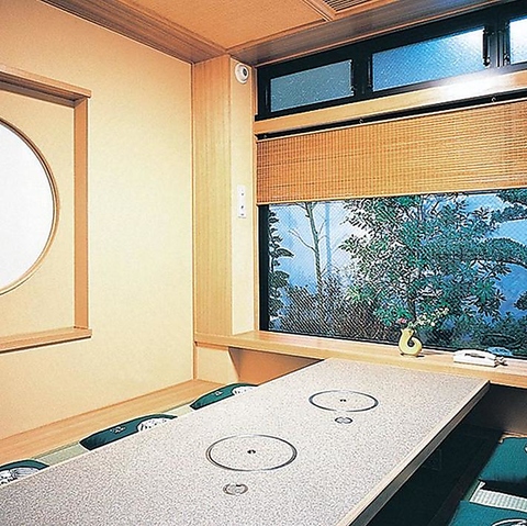 接待・会食、ご家族の集まりに・・・座りやすい掘りごたつ式の席で、お庭を眺めながらゆったりとお食事をお楽しみください。
