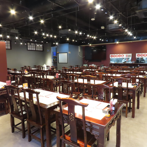 中国の黄色い提灯が華やかな雰囲気を演出している明るい店内には、全68の座席を完備しています。席同士を組み合わせることができるテーブル席をご用意しておりますので、大人数のグループも大歓迎◎さらに、貸切の際は椅子を追加して最大100名様までご案内が可能です。各種宴会にぜひご利用ください。
