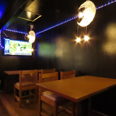 テーブル席は、4名卓が2つあり、女子会や二次会にぴったりのアットホームな空間を提供しています。にぎやかな雰囲気の中で、友人たちとワイワイ盛り上がりながら、楽しい会話や歌を楽しむことができます。貸切も可能なので、プライベートなイベントにも最適です。