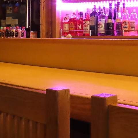 5席のカウンター席では、友人と一緒にカジュアルに過ごすことができます。おつまみを片手に、気軽にカラオケも楽しめます。