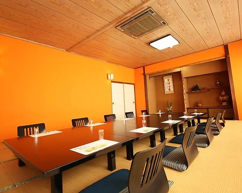 最大24名様までご利用いただける大きめの個室。接待やご親族のお集りにご利用ください。座敷・椅子席を選べます◎
